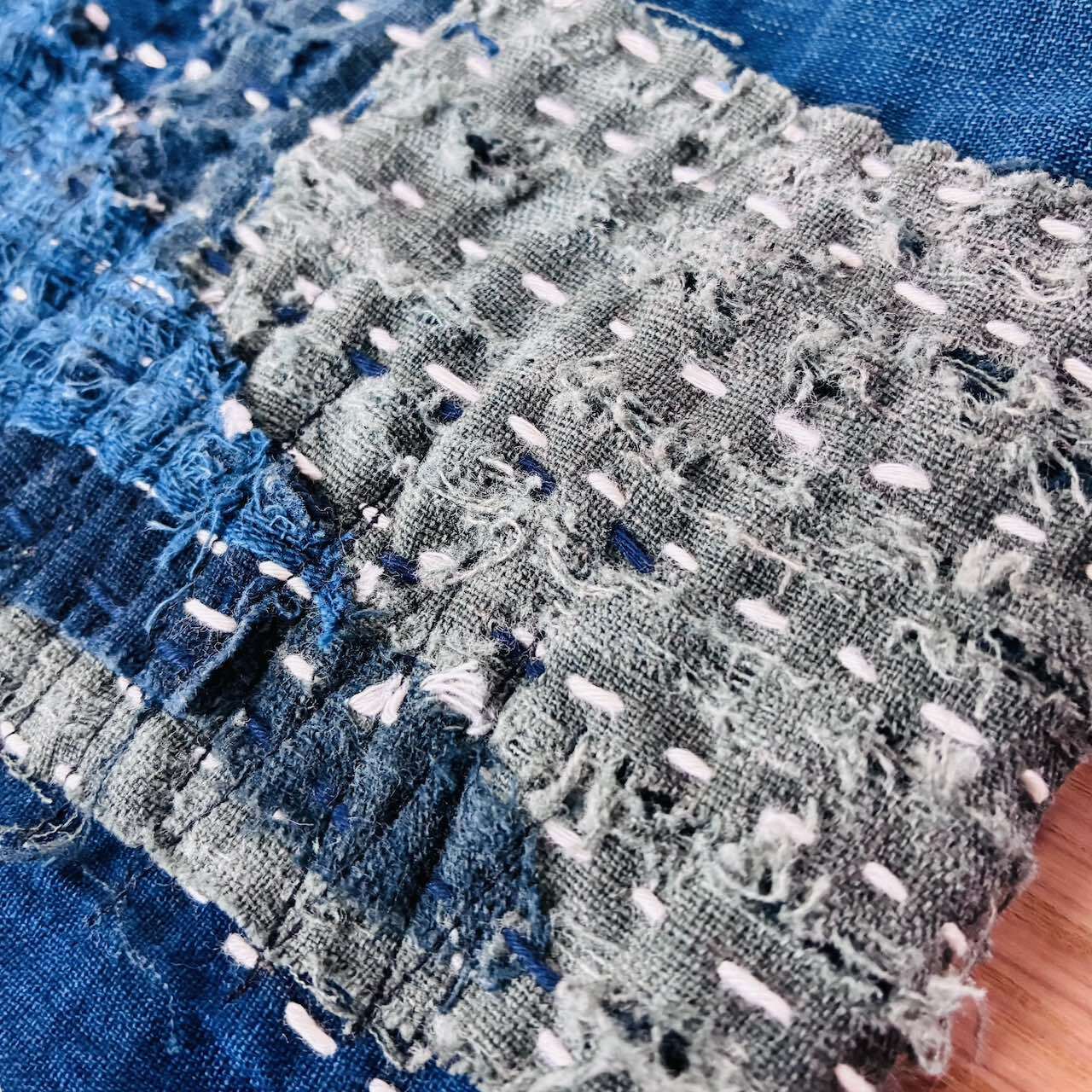 伝統的な藍染の襤褸(ぼろ)生地を再構築し、現代のスタイルに昇華させたリメイクTシャツです。