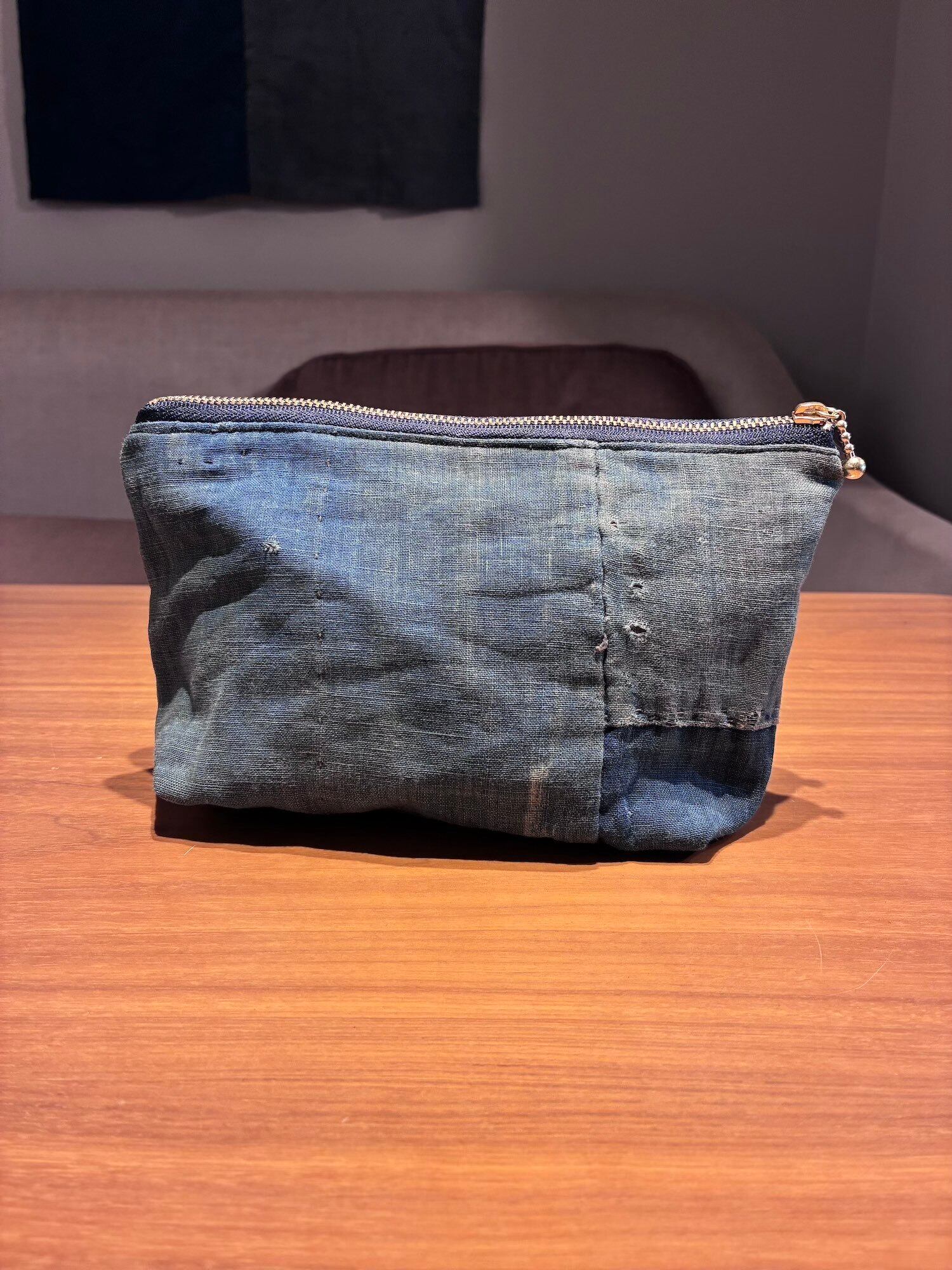 This handmade pouch is crafted from vintage indigo boro textiles, reimagined through patchwork design.
