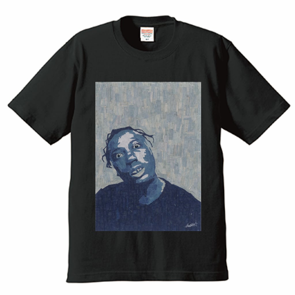 このTシャツは、藍染生地の端切れを用いて制作されたオリジナルアートをプリントした一枚です。