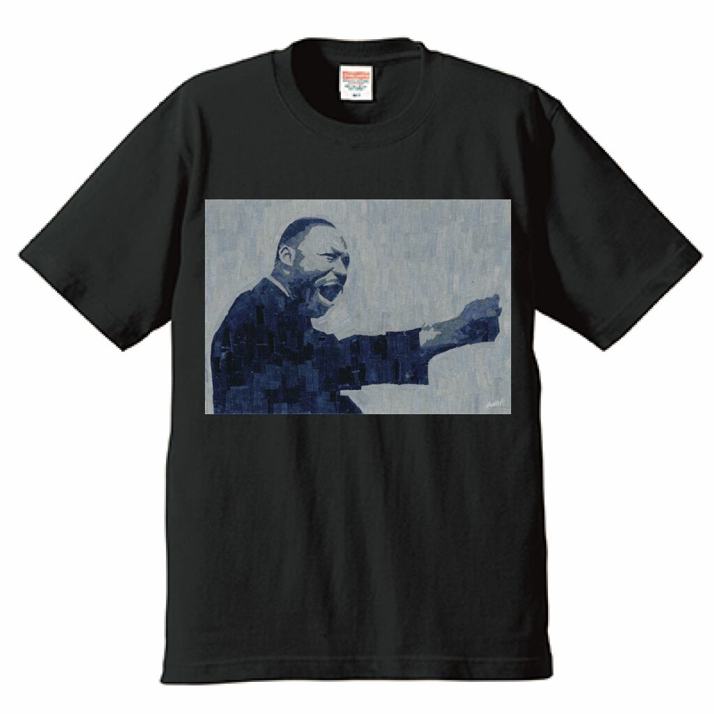 This T-shirt features an original artwork crafted from hand-pieced indigo-dyed fabric, inspired by one of history’s greatest voices for peace and equality.