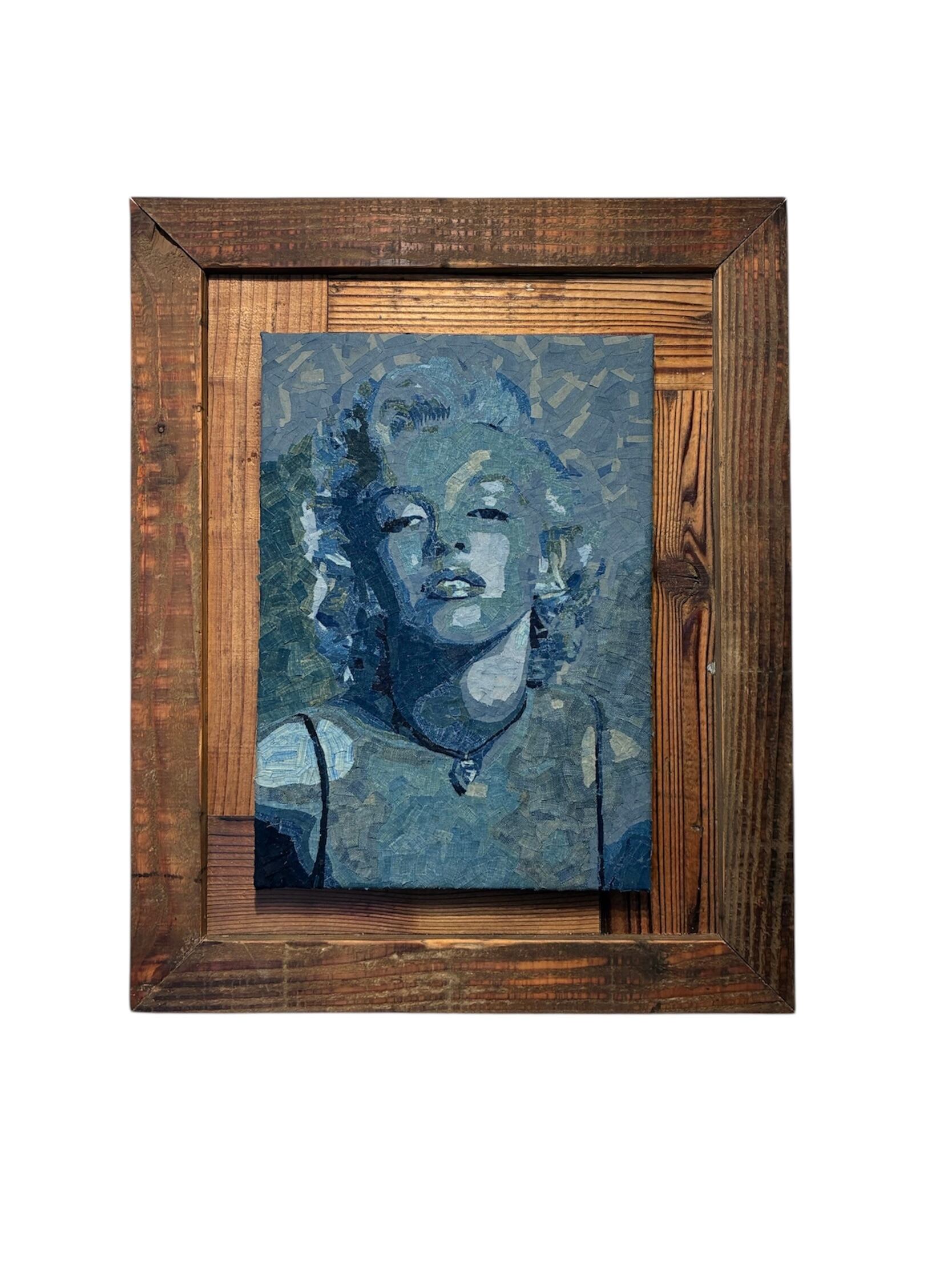 This work reimagines an iconic figure of the 20th-century silver screen, reconstructed entirely from fragments of indigo-dyed boro textiles. Inspired by the classic film Some Like It Hot, the piece captures her timeless allure, balancing elegance, strength, and vulnerability through meticulously layered shades of indigo.