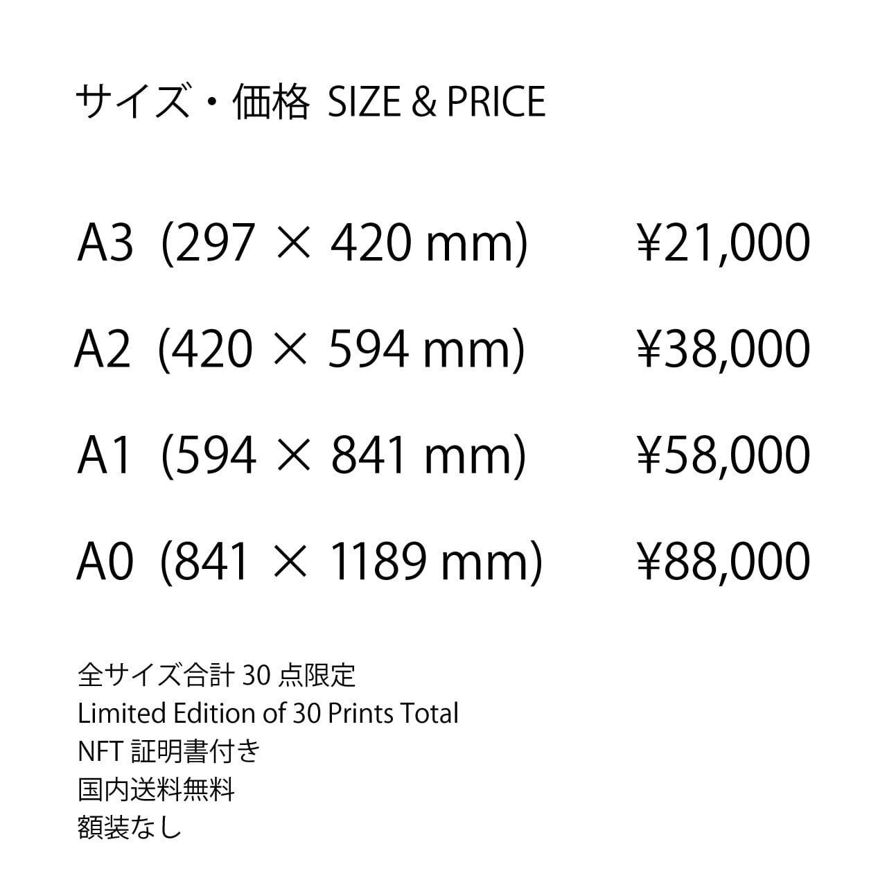 A3 — ¥21,000 (Free shipping within Japan)