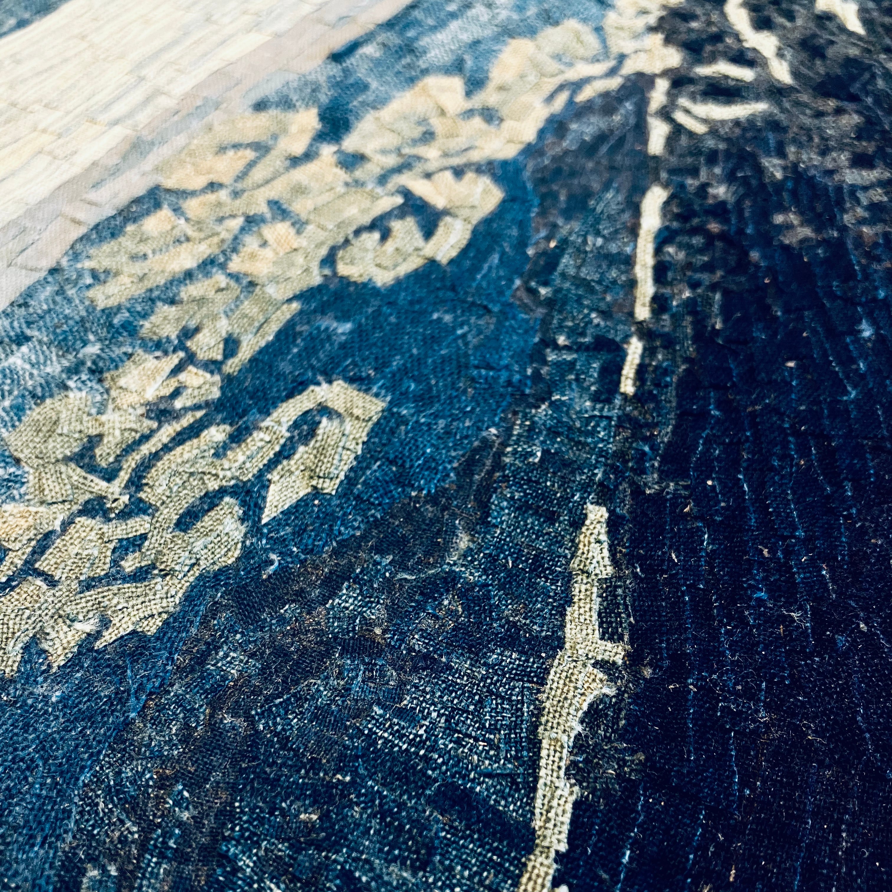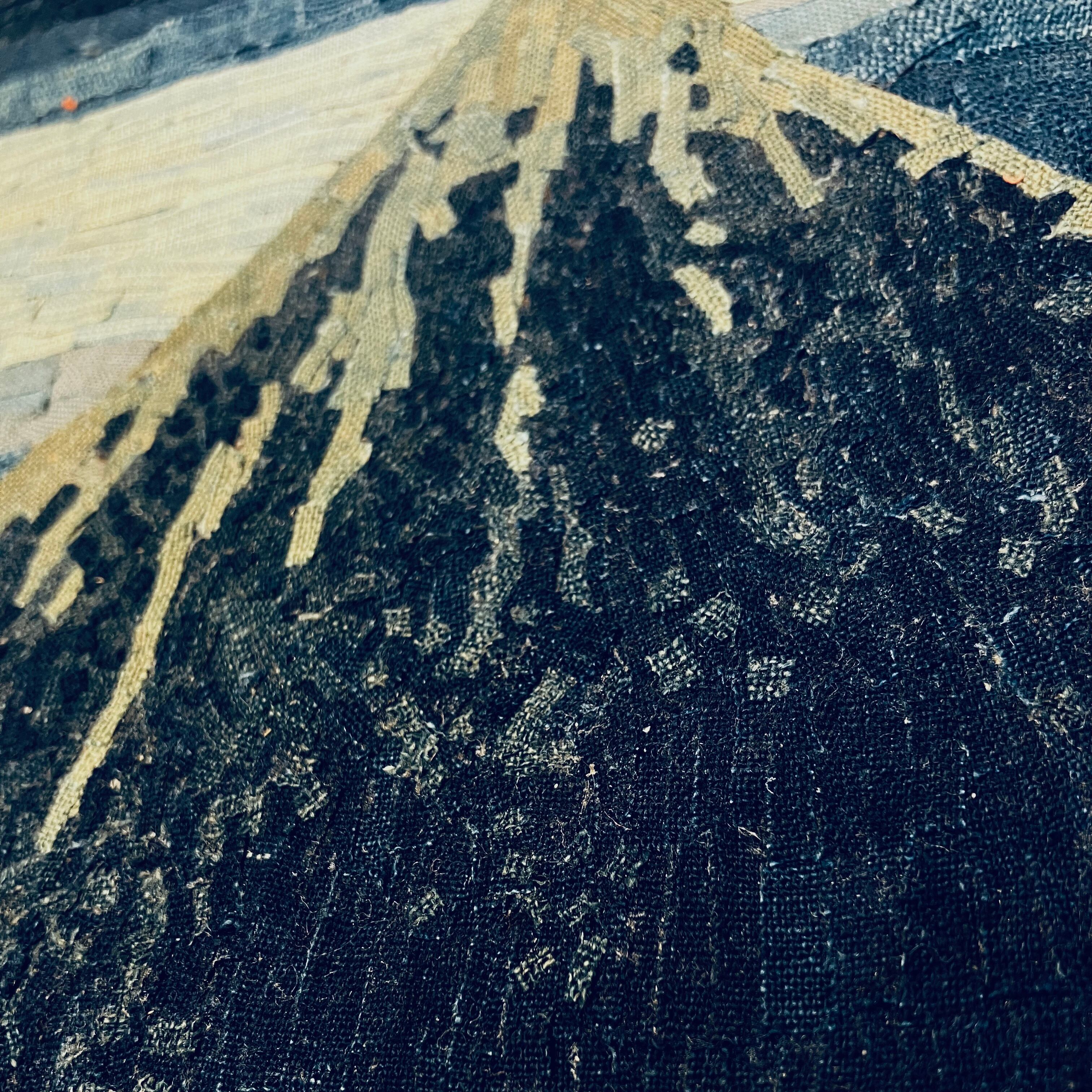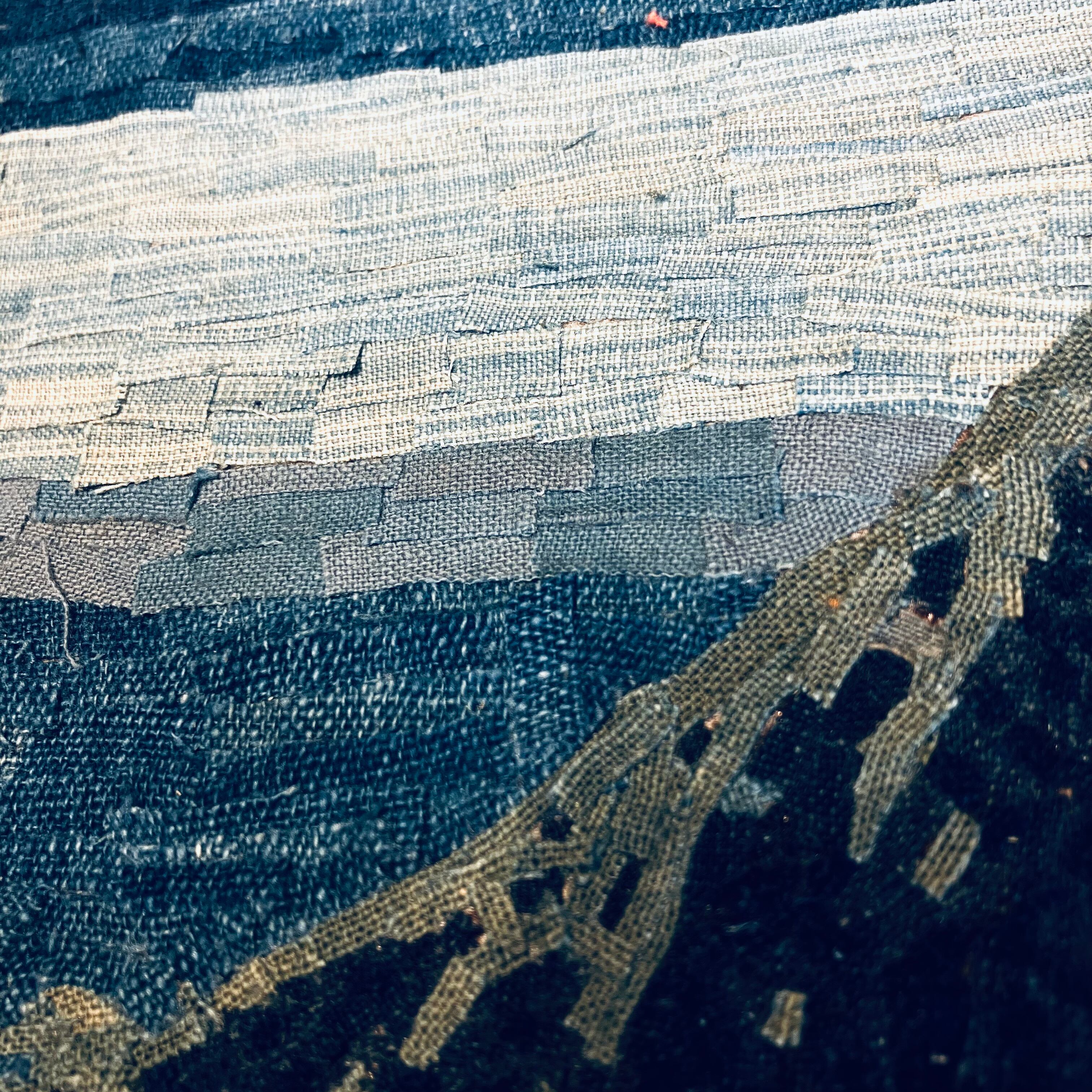 Indigo Textile Art – Storm Over Black Fuji Reproduction (NFT Certified | Limited Edition)