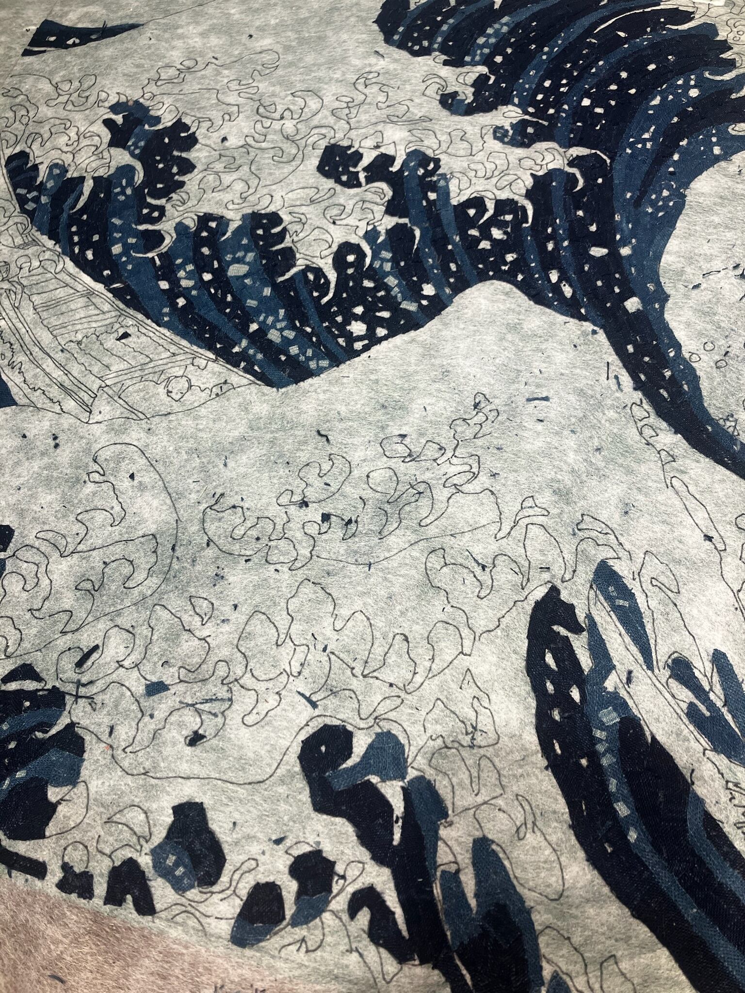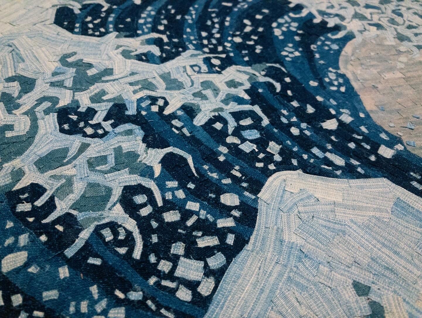 Indigo Textile Art – The Great Wave Reproduction (NFT Certified | Limited Edition)