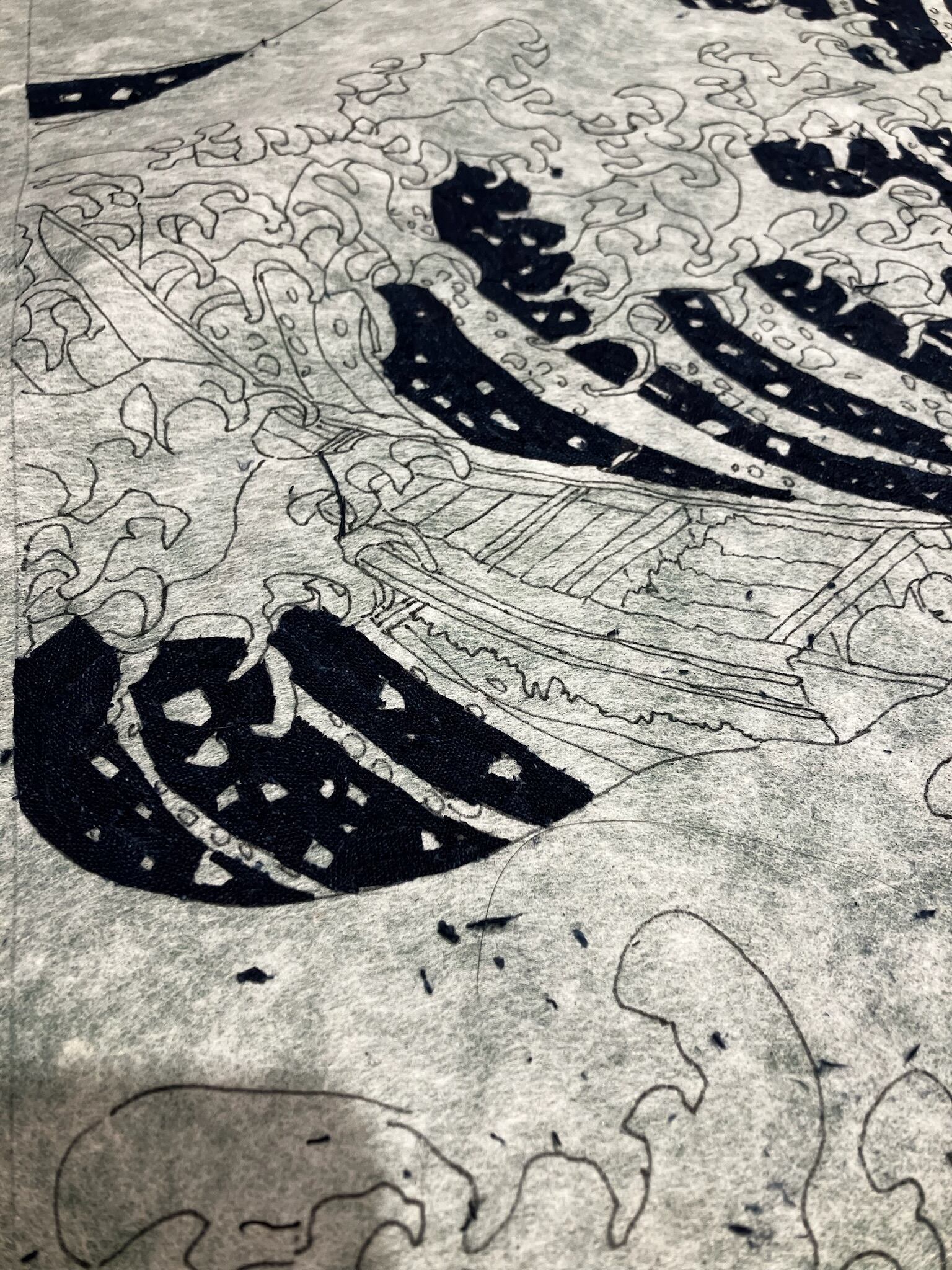 藍染襤褸の断片で再構築しました。
