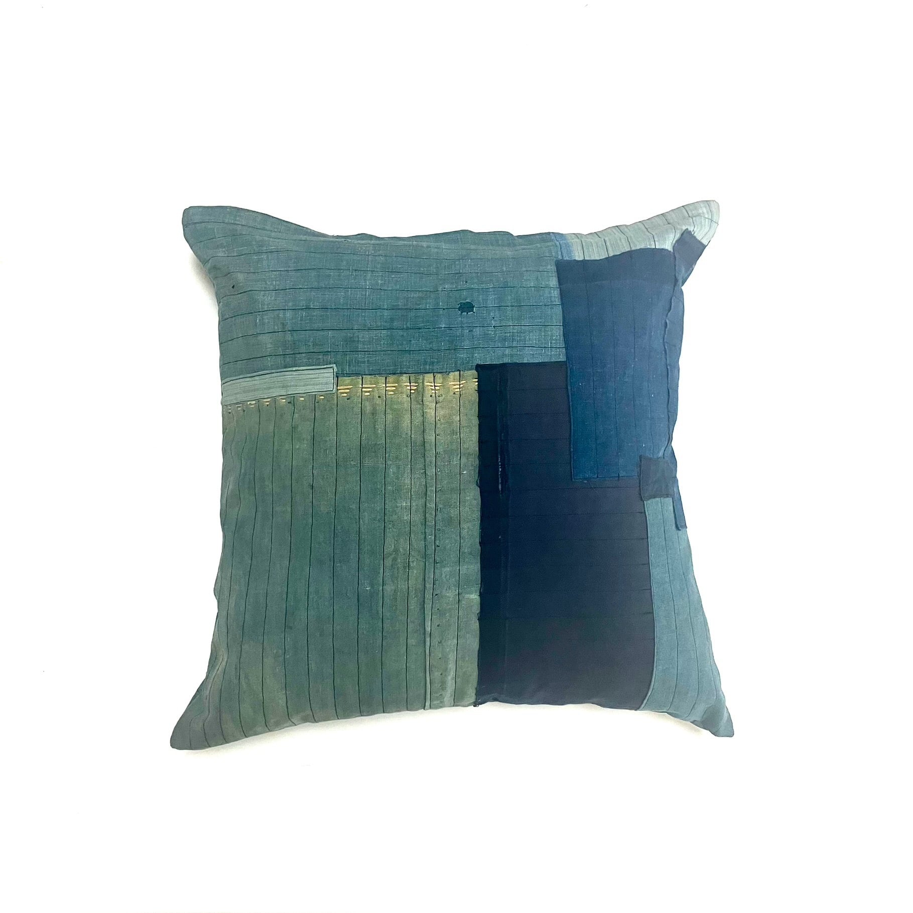 This cushion cover, crafted from rare vintage indigo-dyed boro fabric, is designed to elevate your living space. It serves as both a practical and beautiful piece of art, embodying the essence of traditional Japanese craftsmanship.