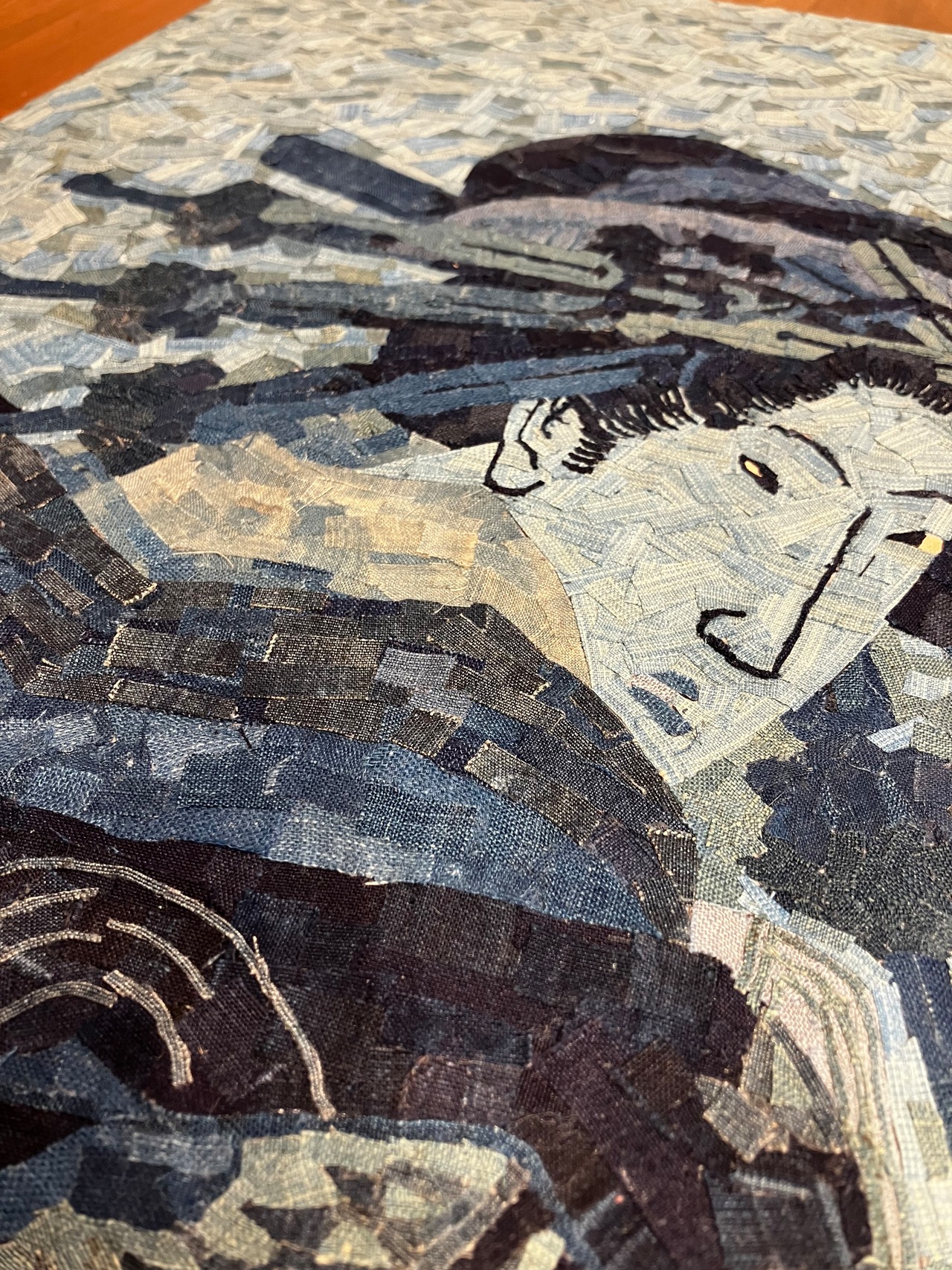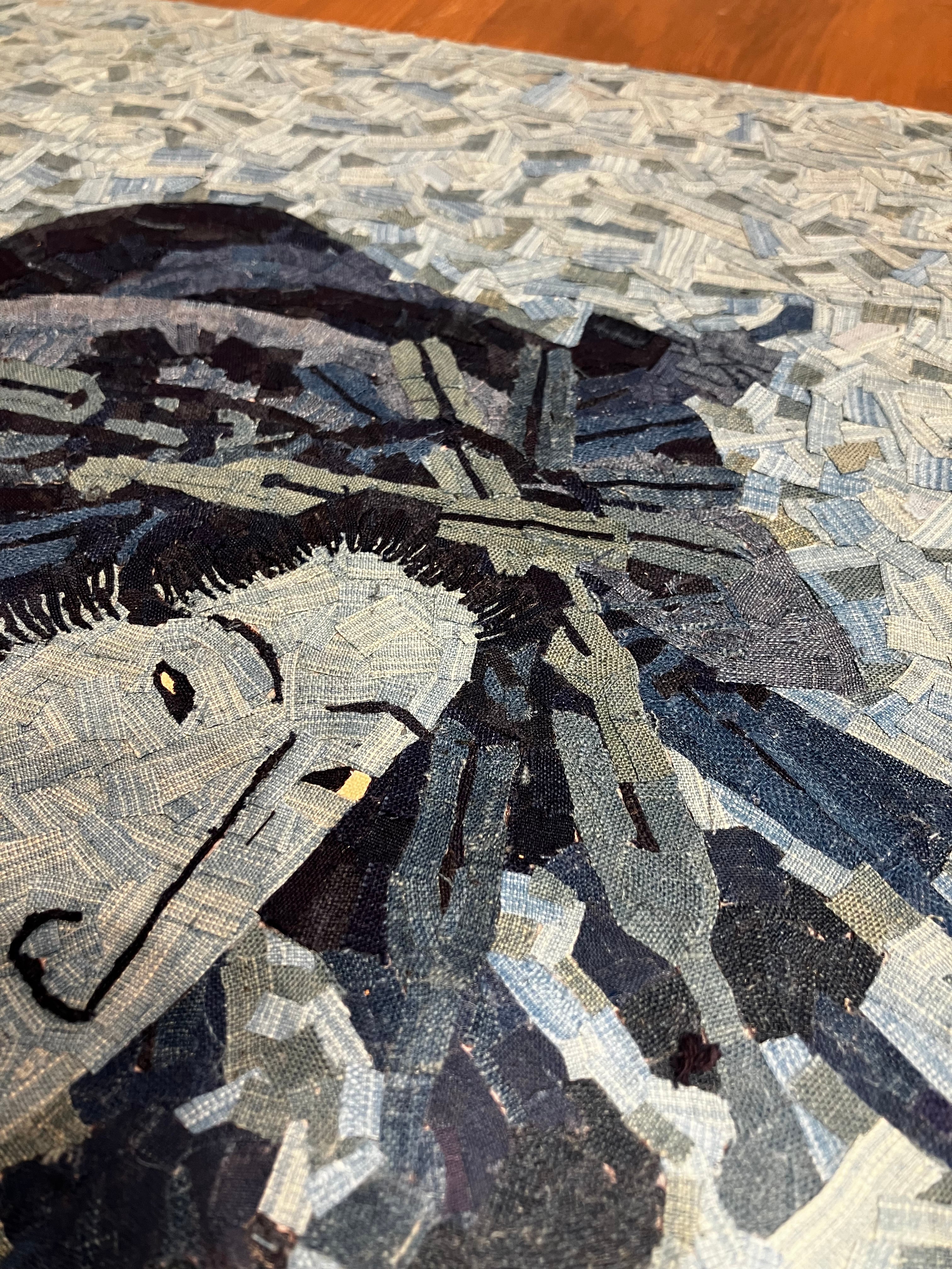 Sustainable Art: Created using leftover indigo-dyed fabric, embracing sustainability.
