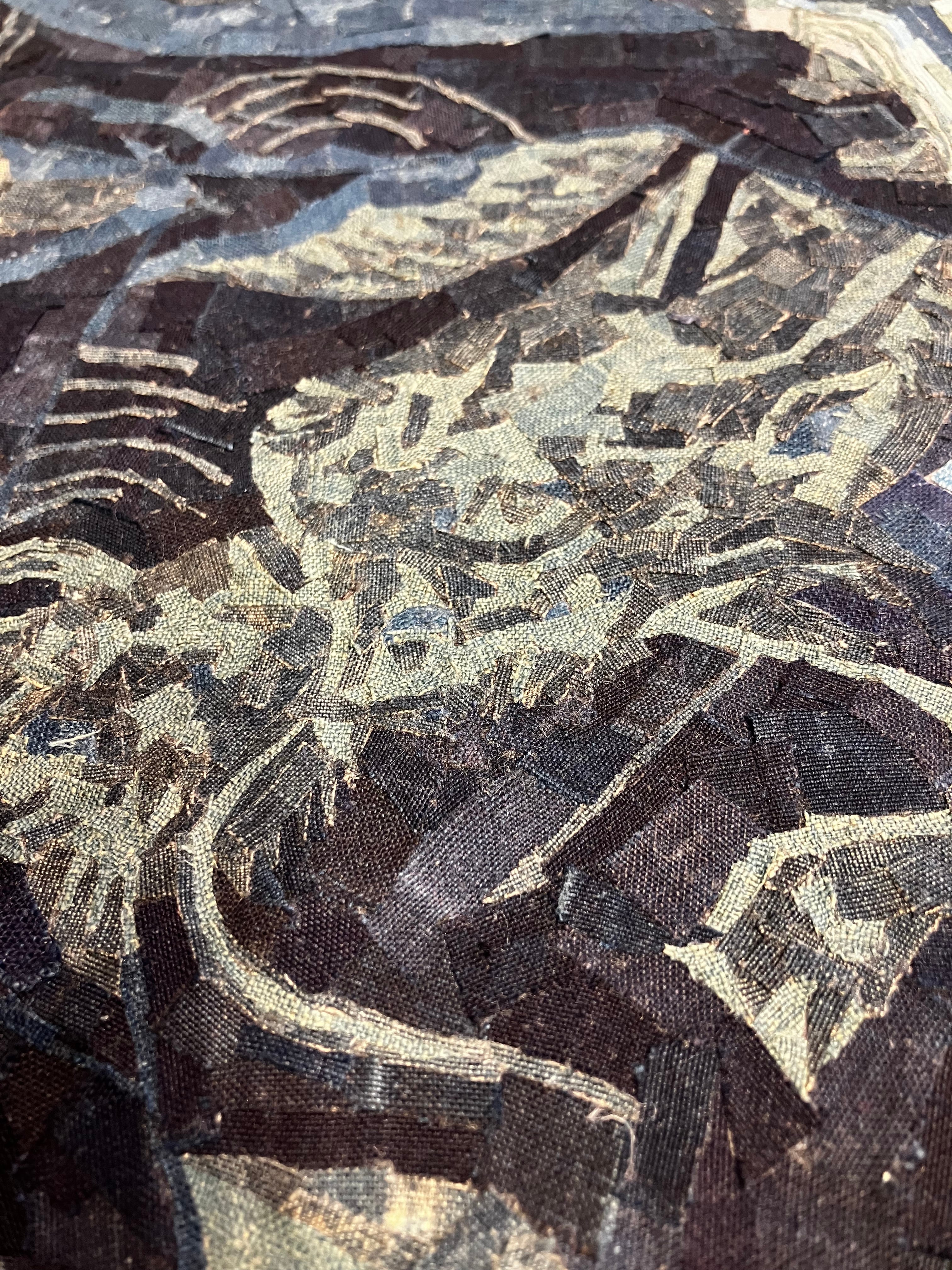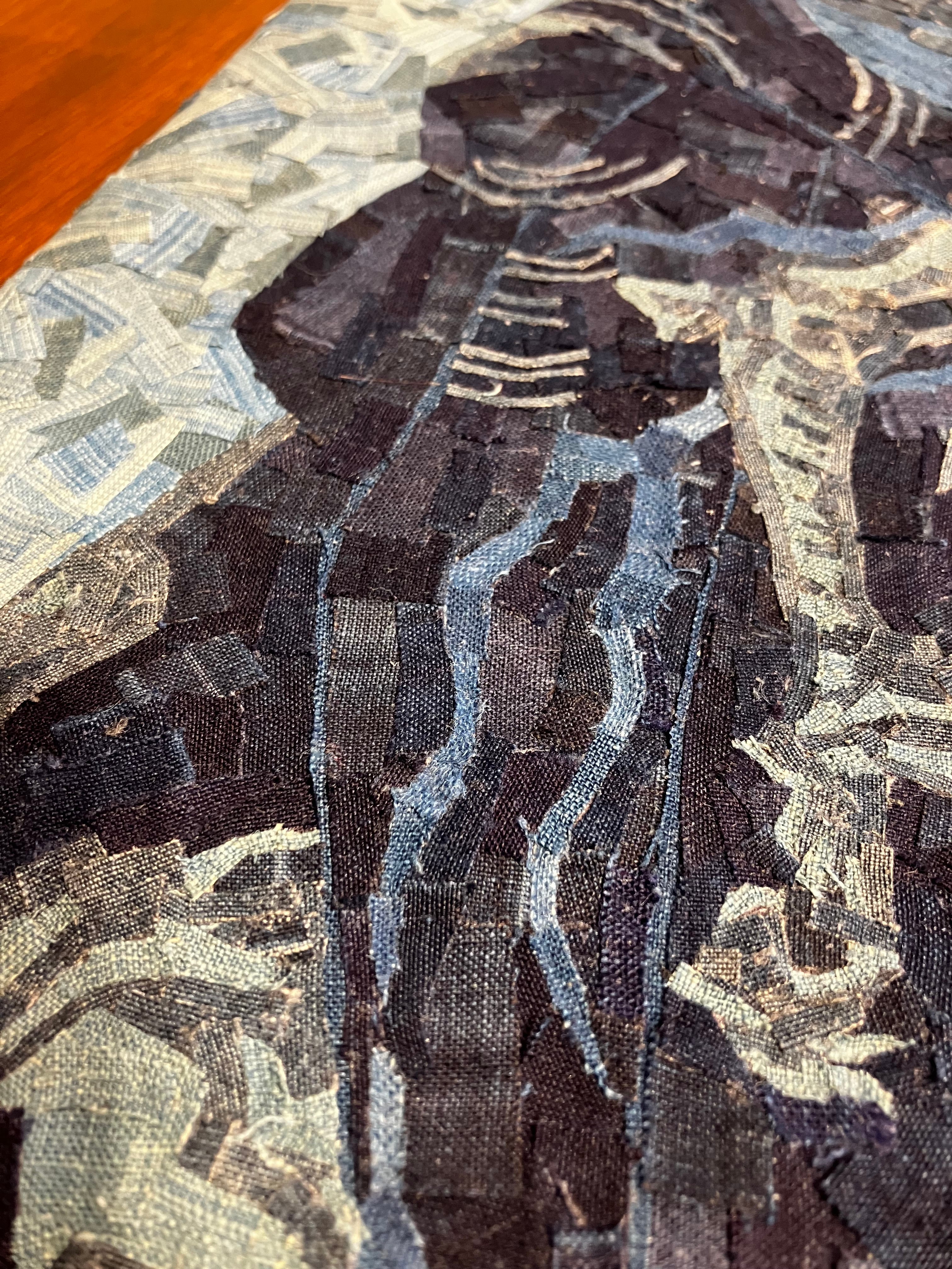 持続可能なアート: 藍染生地の端切れを活用し、環境に配慮した制作背景。